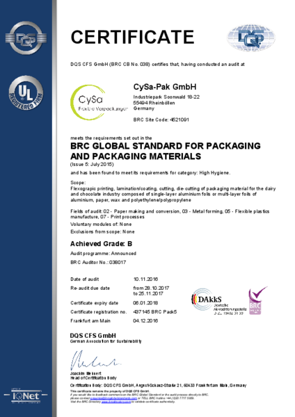 La certification selon les normes ISO 9001:2008 et BRC/IoP est le reflet de notre management de la qualité. Elle garantit les standards de qualité et d'hygiène élévés de l'ensemble de nos produits.